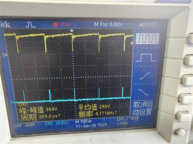 - The duty cycle of my MOSFET is very small. I replaced the parameters of the relevant components in the voltage feedback loop, but there was no change. Only by increasing the parameter values of the RC circuit between the control chip CS pin and the sampling resistor in the current sampling circuit can the duty cycle be increased, and changing other parameters has no effect. The output voltage of the flyback converter is normal under no-load and light-load conditions, with the duty cycle remaining at a very low level (appearing as a flat line). However, under heavy-load conditions, the duty cycle is still very small and the output voltage drops to around 15V. What could be the possible reasons for this phenomenon?