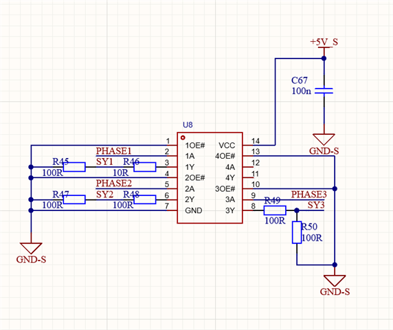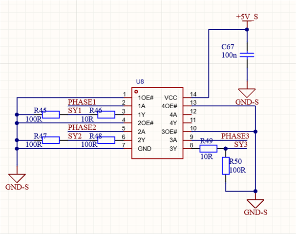 分别通过100pf电容接到3路LM5032控制芯片的RT/sync引脚上,RT电阻为47k,3路芯片的驱动输出呈现各类60°和120°组合的形式,时钟频率依然保持120°,为何驱动的移项对不上?请详细分析一下原因,想了解一下驱动频率是否时跟随外部时钟频率的1/2,如下: