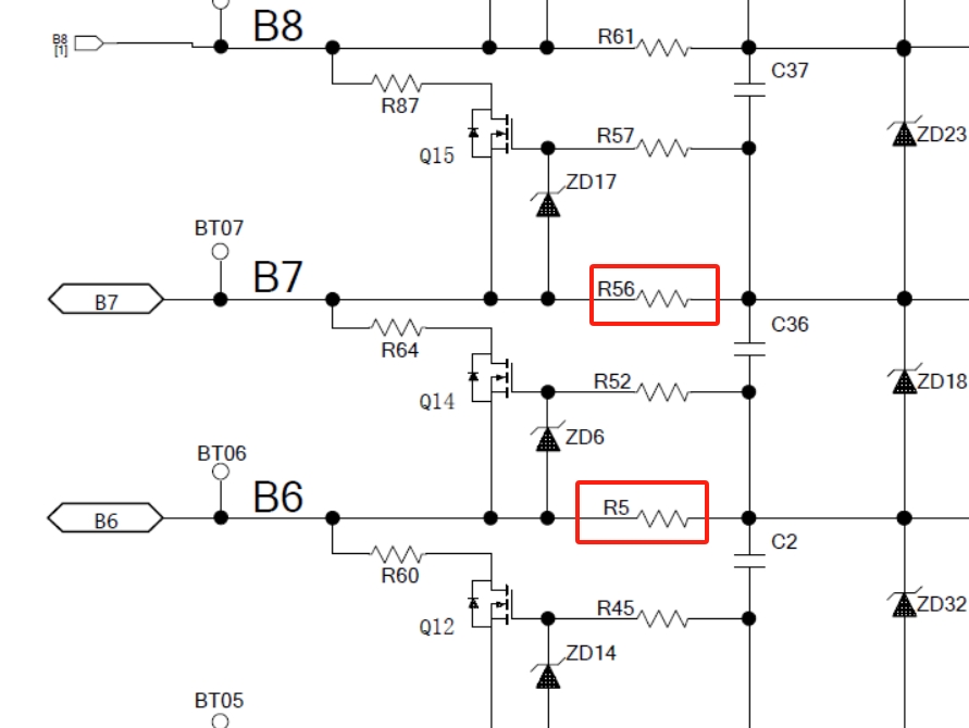 请教下BQ76952 电压采样的输入100R电阻出现多串损坏有哪些原因导致?为啥损坏的都是出现6~8串之间电阻?