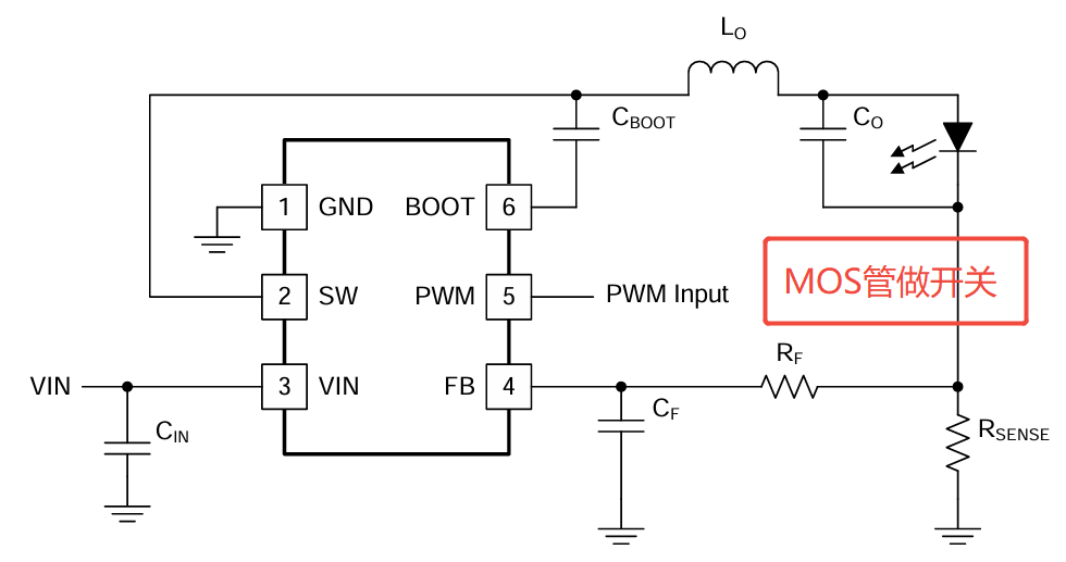 上图种红色框部分,能否增加一个NMOS管,作为开关,来控制LED的开和关,该方案是否可行