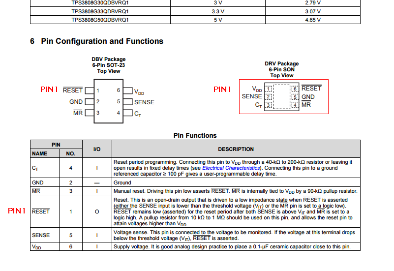 视图都是Top View,SOT23-6的PIN1是RESET,而SON6封装PIN1怎么是VDD呢,好像整个镜像了,与底下的Pin Functions也对不上