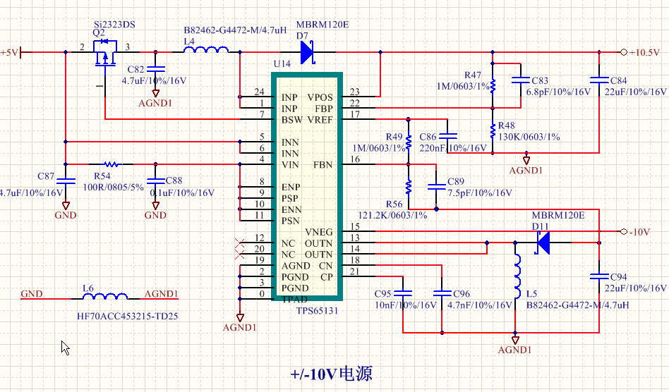 原理图按照datasheet画的,接通5V电源后,发现有+10.8V电压,VNEG电源异常,为+0.2V左右(接20K左右的电阻到GND作为负载),请问这是那里的问题?