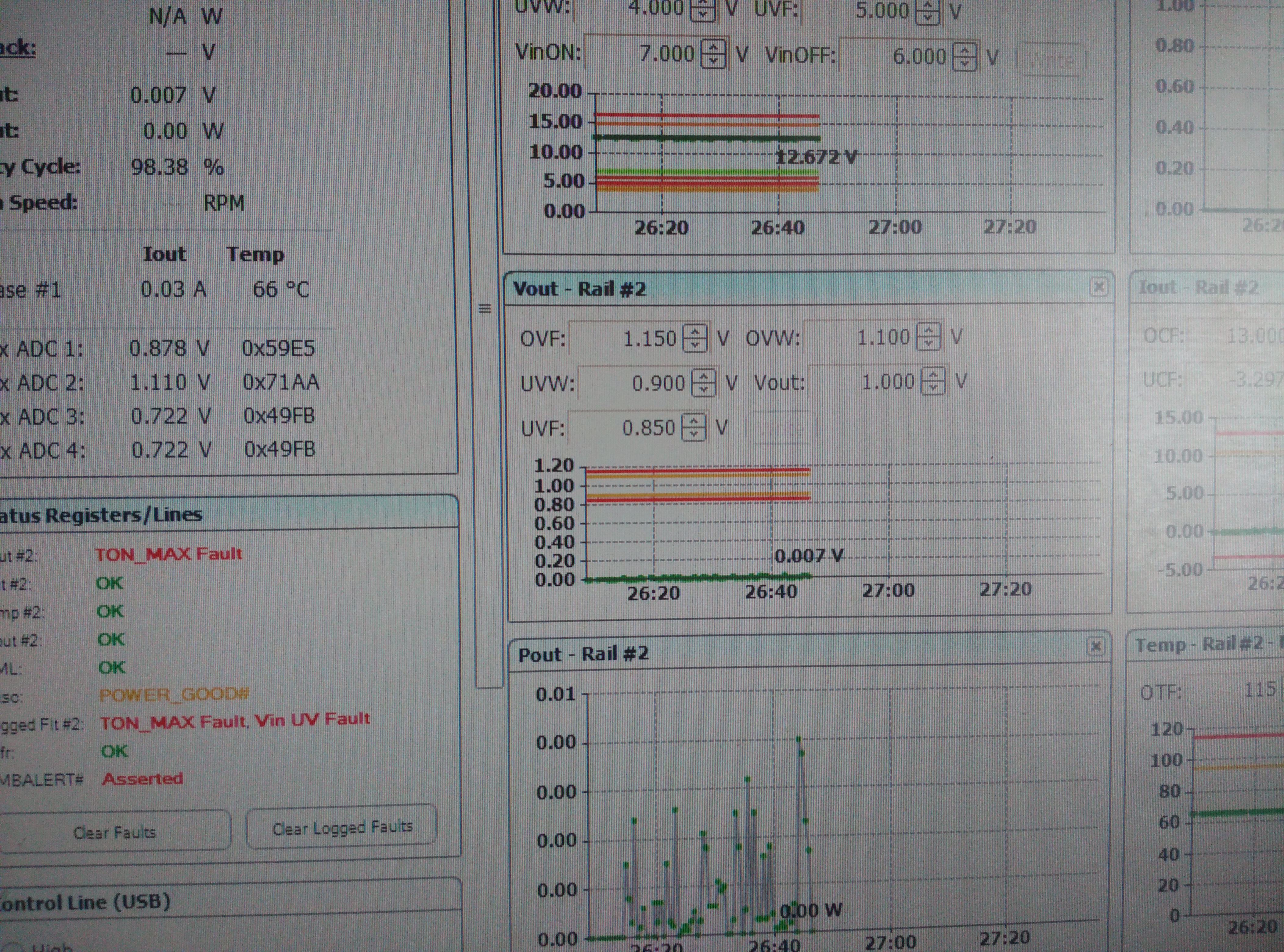 自己照着开发板画的板子,没有焊DSP,用PMBUS调的,焊了三块板子,每块板子都是第一路有输出,第二路没有输出,而且ucd7242设计的时候SREA和SREB上拉到3.3V,可SREB测得2.9V,没有拉上去,三块板子都是这个问题,能不能帮忙分析分析呢