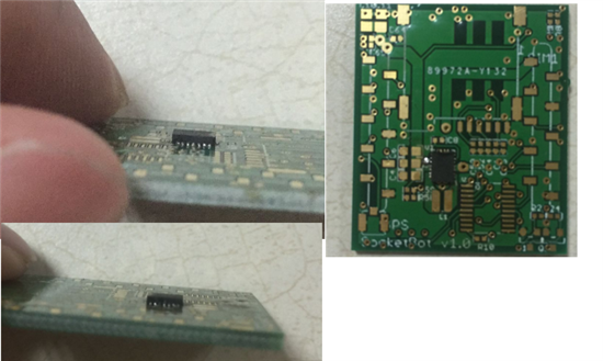 3/ 怀疑是芯片底部的GND散热焊盘设计不对导致,于是用小刀把焊盘割掉大部分,发现还是短路. 下图是割掉后的示意图,和焊接后的图片