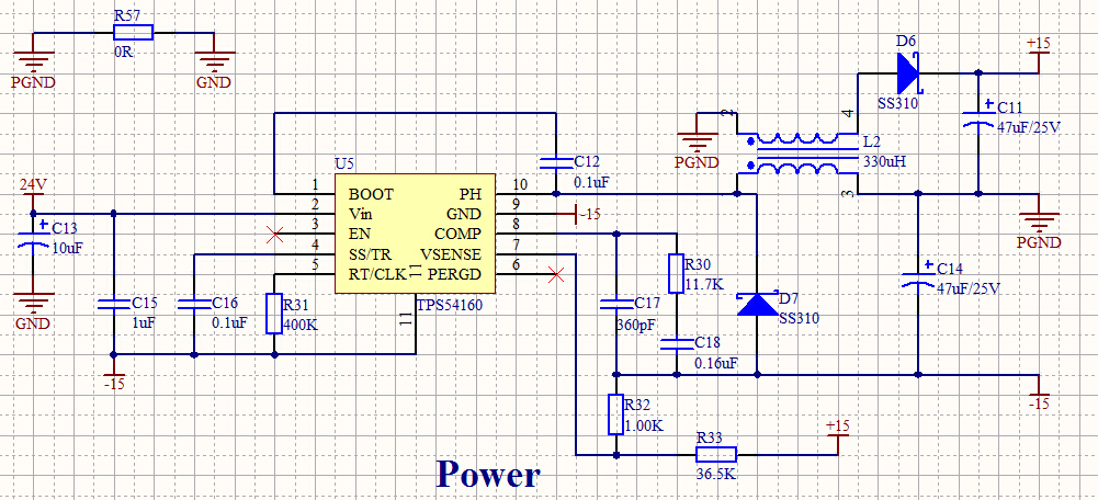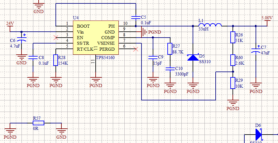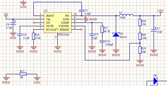 用TPS54160做板载电源,想尽可能减小开关噪声对后续电路的影响,把DC——DC开关部分的GND(PGND)和GND分开,PGND和GND用0R电阻单点连接,请问这样设计可以吗,能不能减小开关的纹波?24V的GND用不用也改为PGND?谢谢
