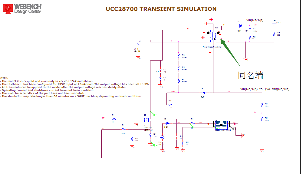 哪里同名端相同了,你自己分析MOS管导通的时候,附边二极管承受的是什么电压?建议你还是先看看基础,弄明白基础的电路工作原理吧。
