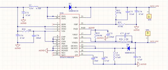 使用TPS65130输出+-15v但输出不正常