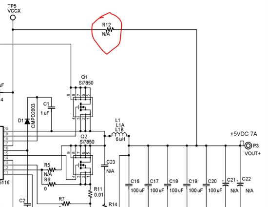 LM25116做的同步降压电路,输出和上MOS管均正常,只有下M0S管测不到驱动波形,是什么原因造成的?该如何解决?求大神帮助!