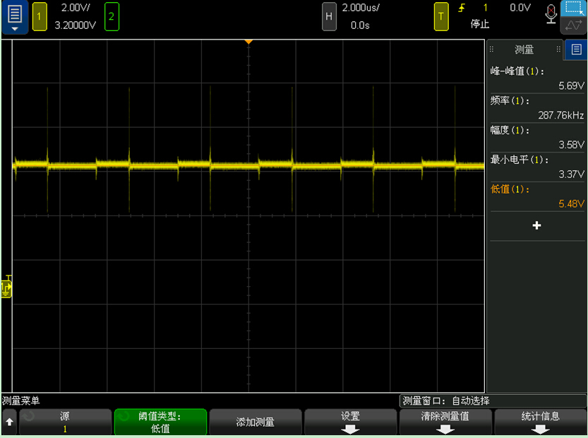 测的SS引脚电压3.9V 说明芯片没有进入热保护状态。VCC电压5.77V(标称6V)。