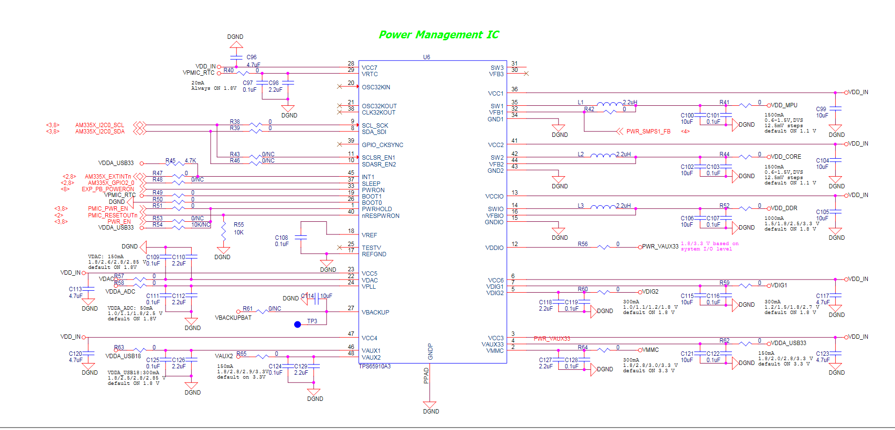但是根据芯片手册,需要电压:VDD_CORE=1.1V,VDD_MPU=1.32V,VDD_DDR=1.5V;