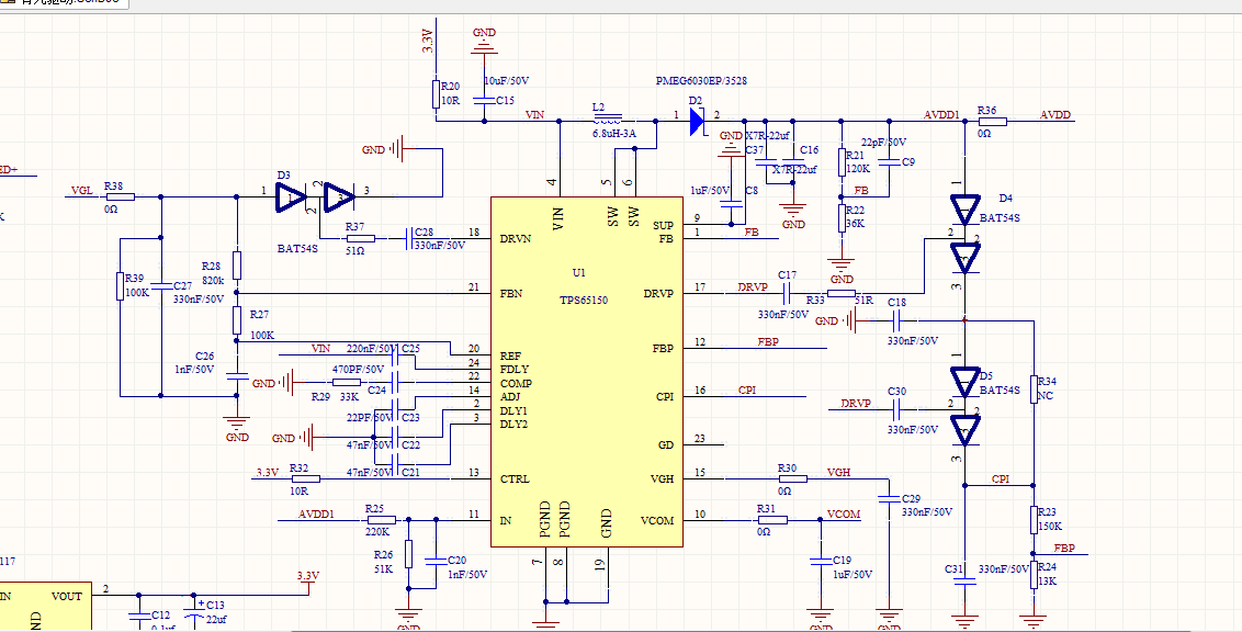 这是我的原理图,输出等于输入电压3.3V。不知道为何会出现这种情况,芯片也换过,R21  R22电阻也改过,也没用。