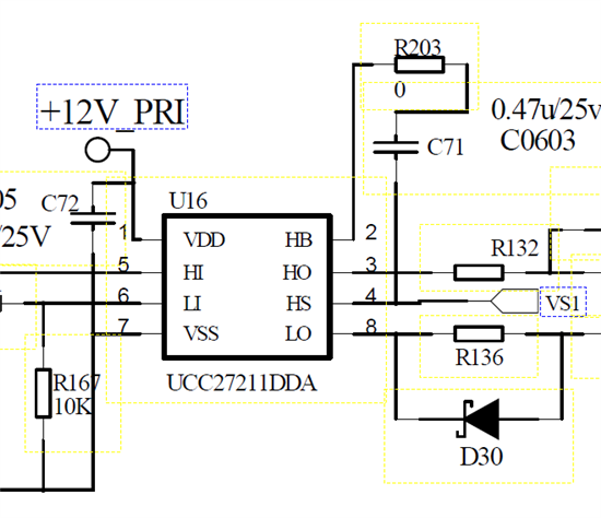 UCC27211的两路输入信号没问题,低侧输出没问题,高侧输出为零?