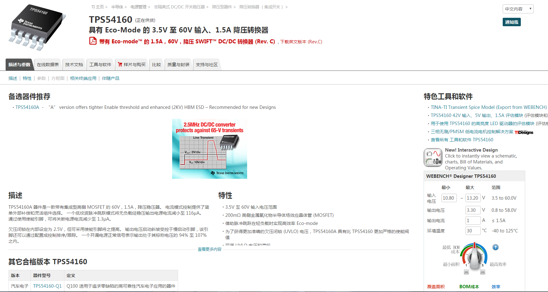 想用tps54160做一个直流稳压电源 输出电压为5V,但是不知道外围元器件的值应该怎么选择