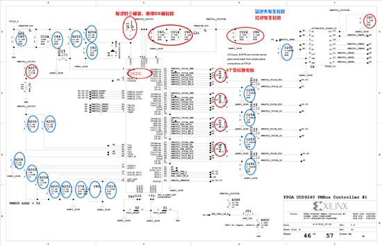 我用的一个FPGA板子电源灯不亮,初步怀疑是DCDC芯片的问题,板上共有3个UCD9248芯片,其中一个芯片周围器件测得多处短路,结果如下图: