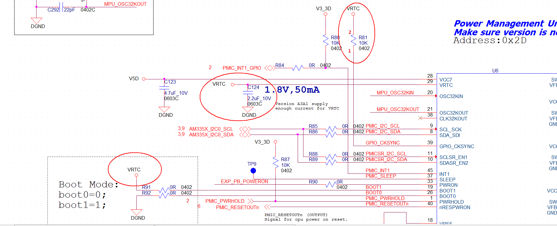 3、看了规格书,开始怀疑是VRTC驱动能力不足,但是外接上拉1.8V仍然不行,请帮忙分析下是什么原因?原理图如下截图