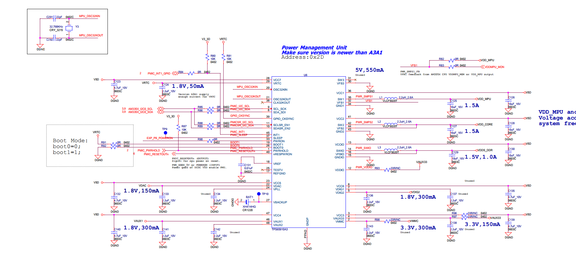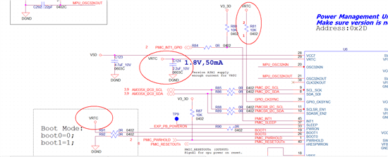 2)  外部接入1.8V电源到R81电阻第2脚(等于直接连到VRTC),发现VRTC是1.8V,BOOT1也是1.8V,但是PMU仍然未启动