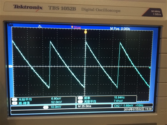因 DR脚出现断续的脉冲群现象,输出的端的波形变成了锯齿波。