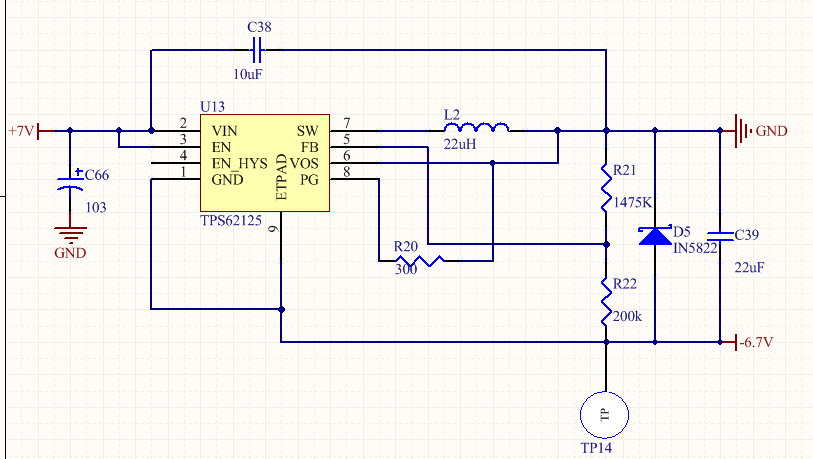按照slva514b的datasheet做的TPS62125的反相降压芯片,为何最后得到的不是芯片的负压啊?是按照datasheet给的参考电路图啊,请教一下各位大神啊?已经调了一天了,拜托各位了!
