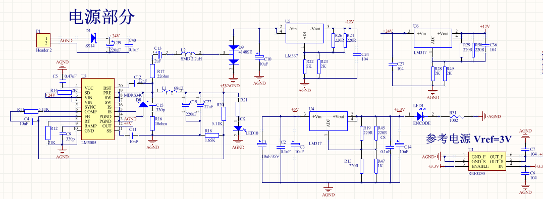 这就是我的电路图部分,上电测试后发现居然是LM5005在发出蜂鸣器一样的声音,对的,没错,不是电感而是LM5005,请教一下高手,原理图的参数哪里不对吗??
