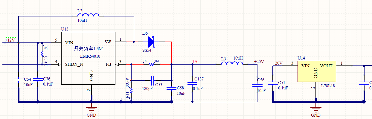 本次做了10块板子,只有4块板子的lmr64010输出正常,其余6块lmr64010都出现不能升压的现象,个别用手摸芯片(也有可能是摸了外围电路)偶尔会正常升压,重新上电又不正常,开始分析是外围电路的问题,换了几次也不正常,C53的值也根据手册的公司算出来,换了几个相近的都不行,实在找不到原因了。有一块正常的做成整机后做振动试验有时候也会不升压。