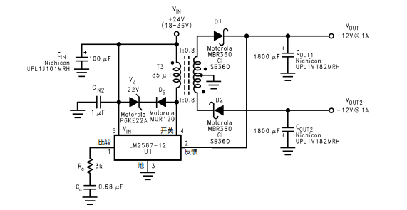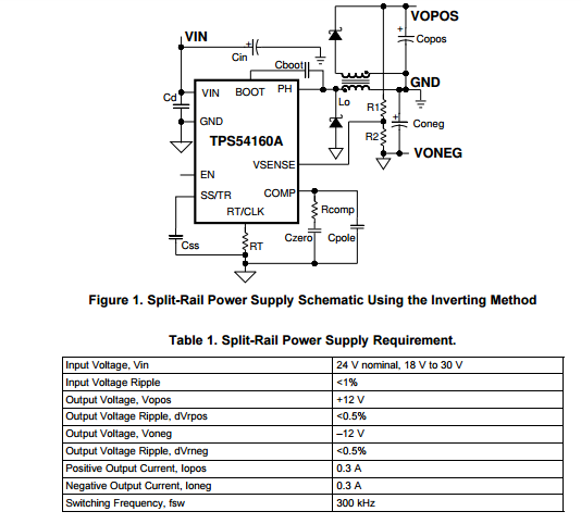 2. 采用TI的fly-BUCK结构如芯片LM5160A,实现24V进,两路输出,一路+12V,一路-12V,但是该方案两路是隔离的。