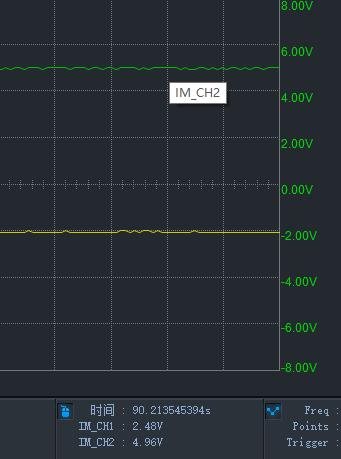 2.用此电压给电流传感器ACS758进行供电并采样。(电流传感器电流通过PWM进行控制。频率为10HZ,全开,与按占空百分比开时,采样电源波动比较大,如下图。