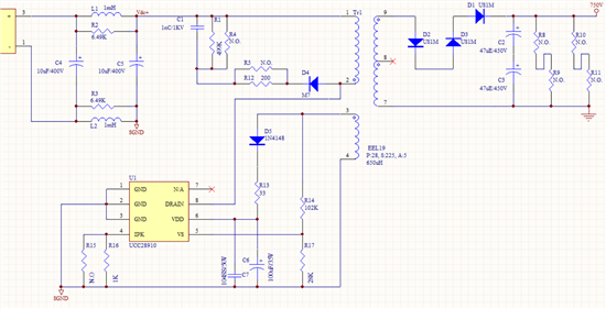 手上有UCC28910这组IC, 请问用UCC28910设计flyback架构可以做这样的应用吗?