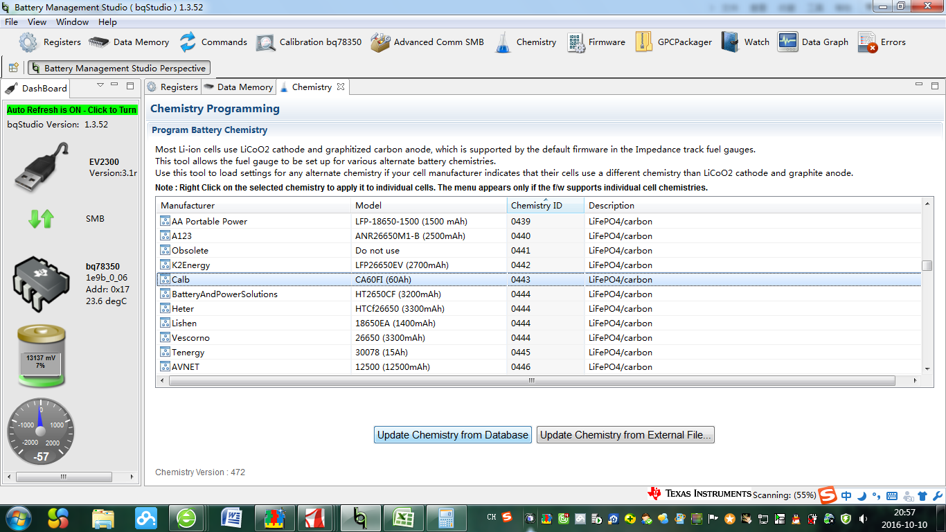 BQ78350+ex2300+bqstudio1.3.52从数据库更新CHEM ID没效果?