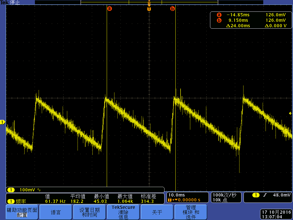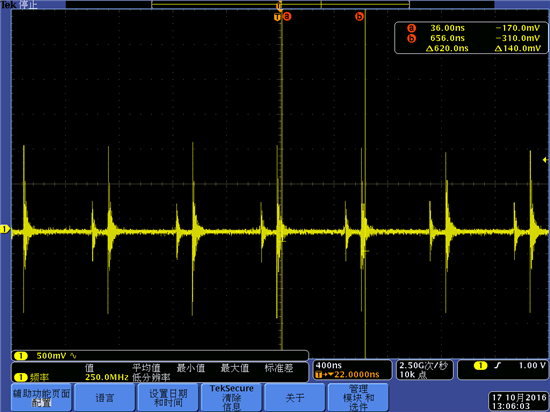 不接负载噪声未出现高频尖峰噪声,接负载尖峰噪声出现,p-p值较高,影响放大电路。原理图中芯片已换为62421,外围电路不变,(芯片淘宝的,买到假货?)