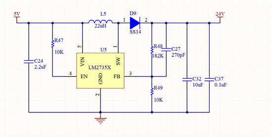 LMR62421芯片 5V升24V,负载最大功率800mw,使用webbench设计电路 24v 200ma。