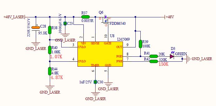 用LM5096做电压监控有问题,手册写着GATE是12V,但是我的输入是48V,GATE却输出58V,会烧毁MOS管,什么原因呢?附电路图