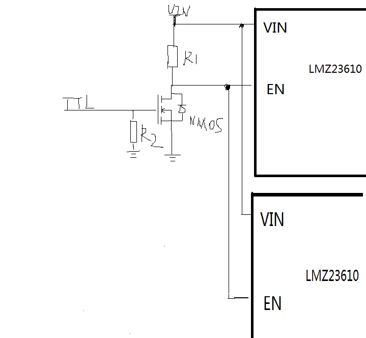使能EN,能否通过使用MOS管,用TTL或COMS逻辑电平来控制(如图)?