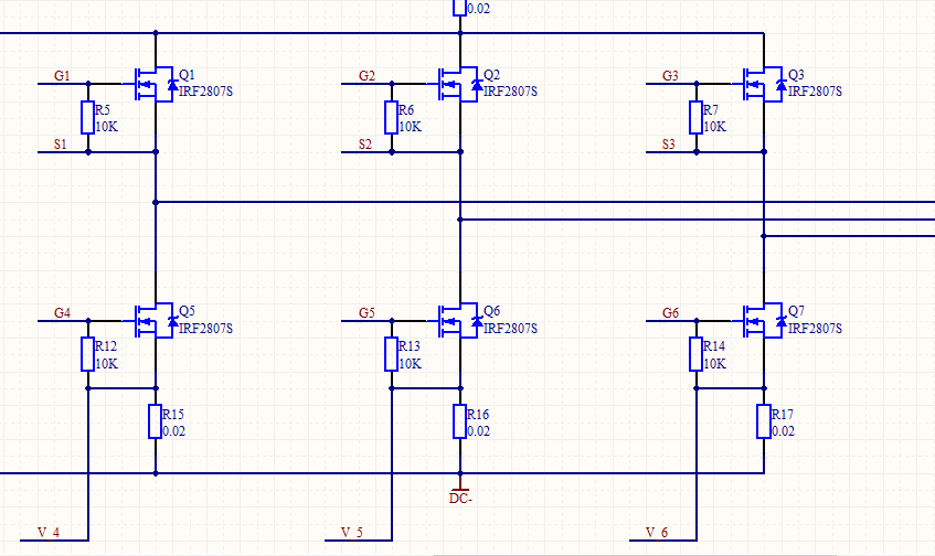 附上逆变电路,还有驱动电路。本人硬件不在行,求各位大神指导下,这一般是由什么原因引起的,加大死区后尖峰更加明显,