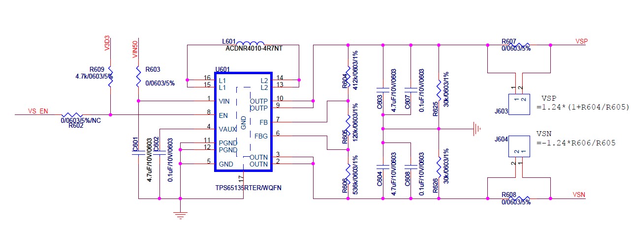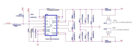 如下电路,VSP VSN设定输出是+/-5.5V,输出时会有200多mA的瞬间大电流(负载电路引起的,是正常的),大约持续3us,这个大电流会把VSP VSN电压抬高1点多V,测量发现FB pin处电压同时也会被抬高到1.38V,请教一下高手如下电路哪里设计的不太合理会导致瞬间大电流会把输出电压抬高,谢谢