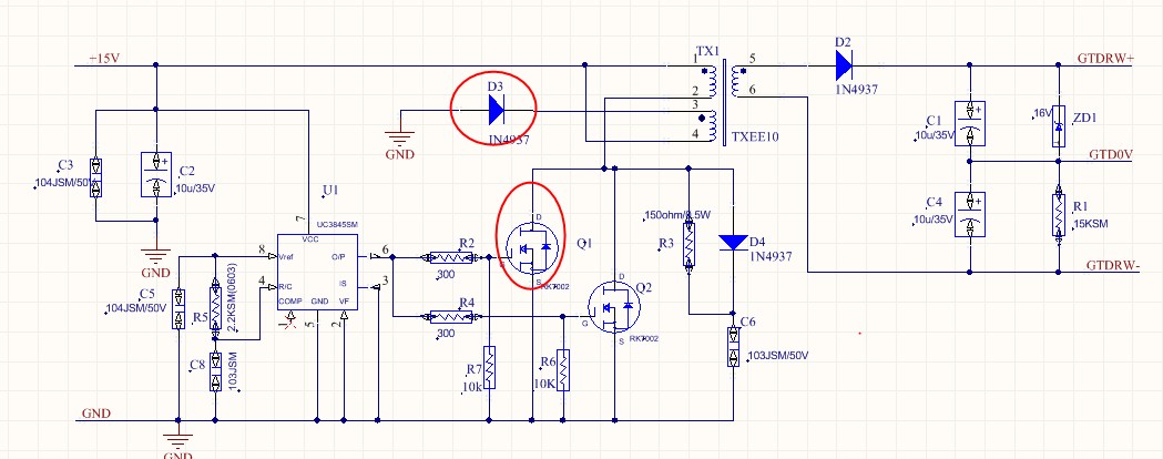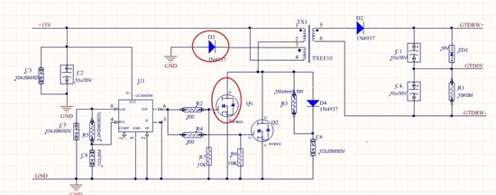 TMDSHV1PHINVKIT 逆变板 中的IGBT的驱动板中 ,有个15V 输入,隔离产生+15V和-12V的电路,