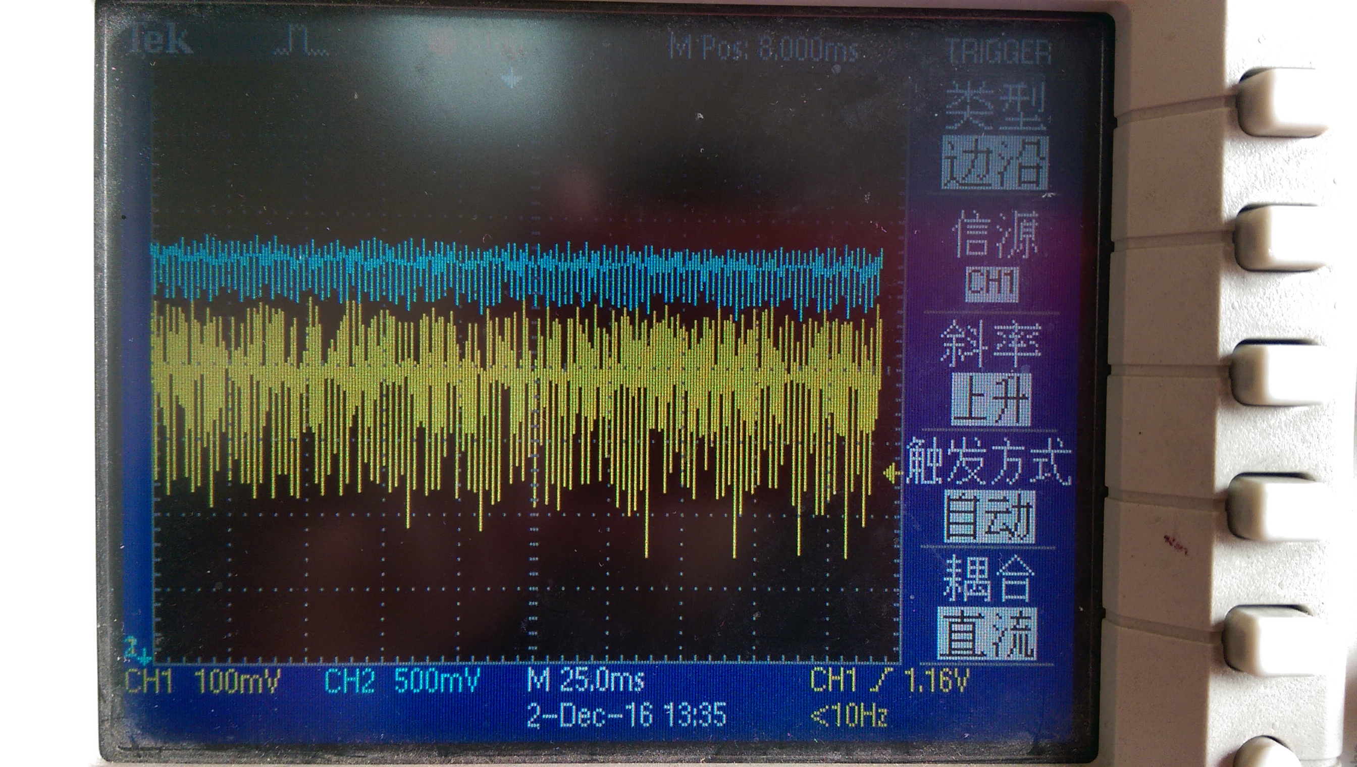 1、恒定0mA(大约),没接负载,测得波形相对稳定: