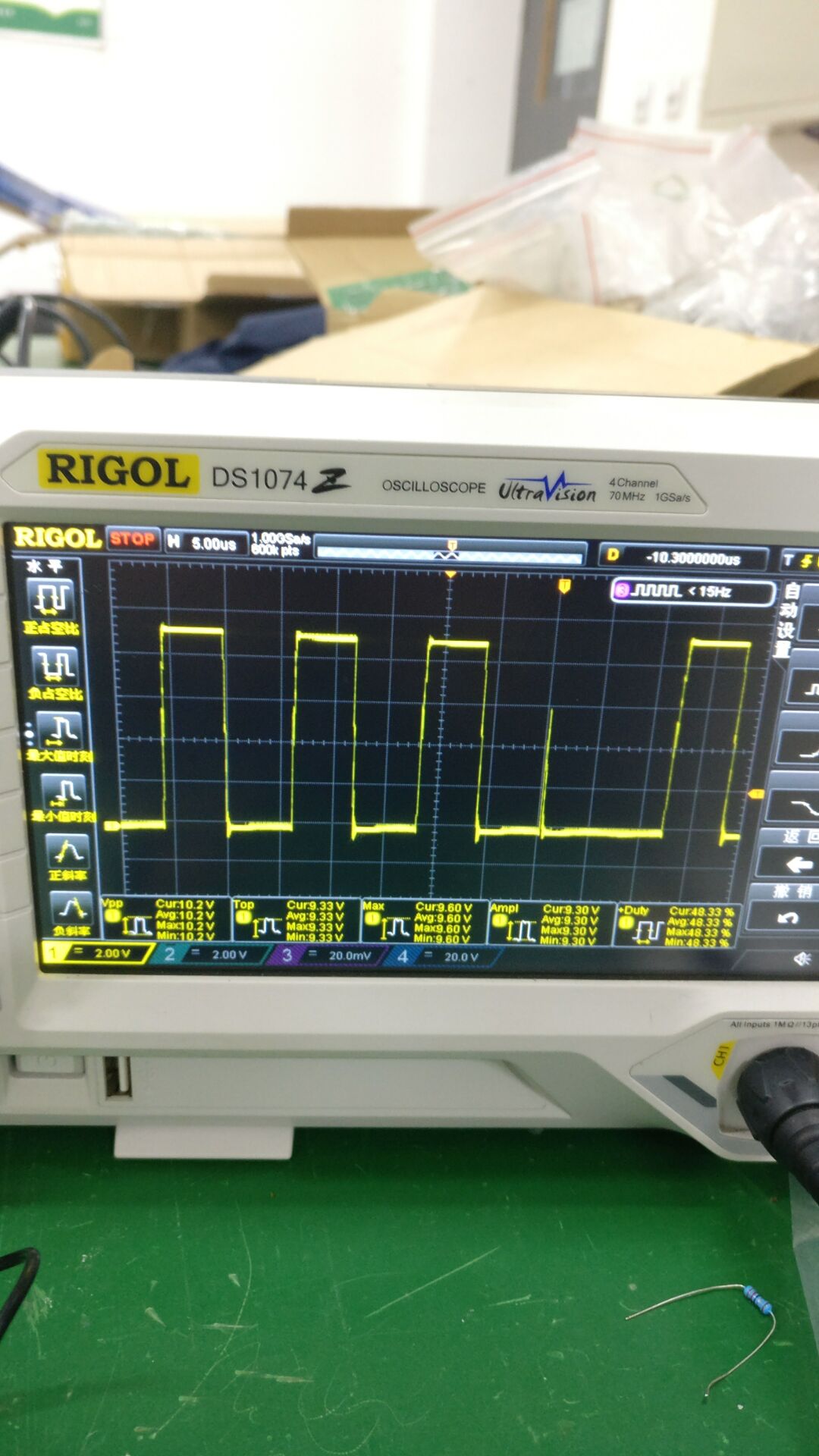 类似这样的波形,应该是MOS开启时保护掉了,你可以测试一下这个时候芯片供电电压或者负载是否有什么异常?等等