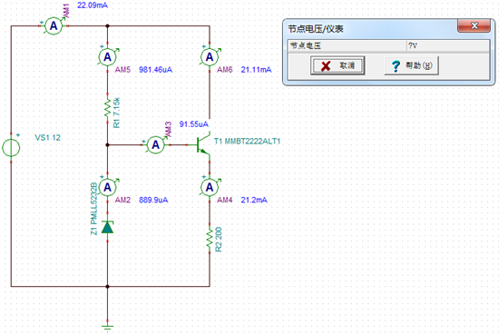 VBIAS2为12V,为了得到ISO7240 VCC2需要的5V电源,我理解图中采用了射极跟随器,对该电路的TINA仿真节点电压分析如下: