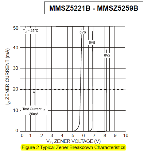 2.实际工作时,齐纳二极管工作在临界击穿状态,根据手册中的曲线估算齐纳二极管压降及流过它的电流