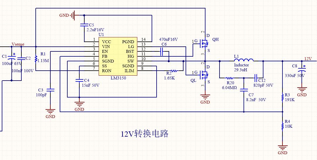 用LM3150电源芯片做一款DC/DC降压电源:15~40V输入,12V 10A输出。用的WEBENCH上的电路图,但是输出电压随着输入电压增加而增加,当输入电压从15V增加到40V时输出电压也从12V增加到13.5V。请问怎么调节确保输出电压稳定在12V。