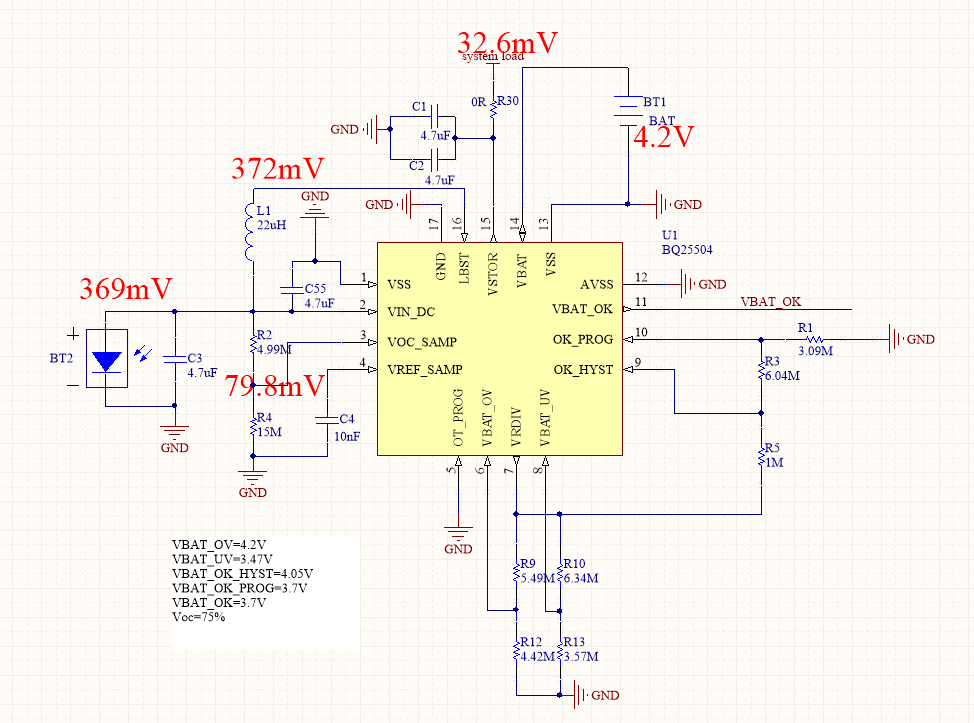 我想请教下,BQ25504芯片给电池充满电却不放电,VBAT_OK引脚一直没有变化,是什么情况。