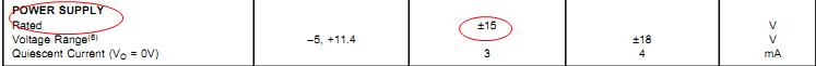 可使用正负15V供电,请见数据手册的第二页的power supply:
