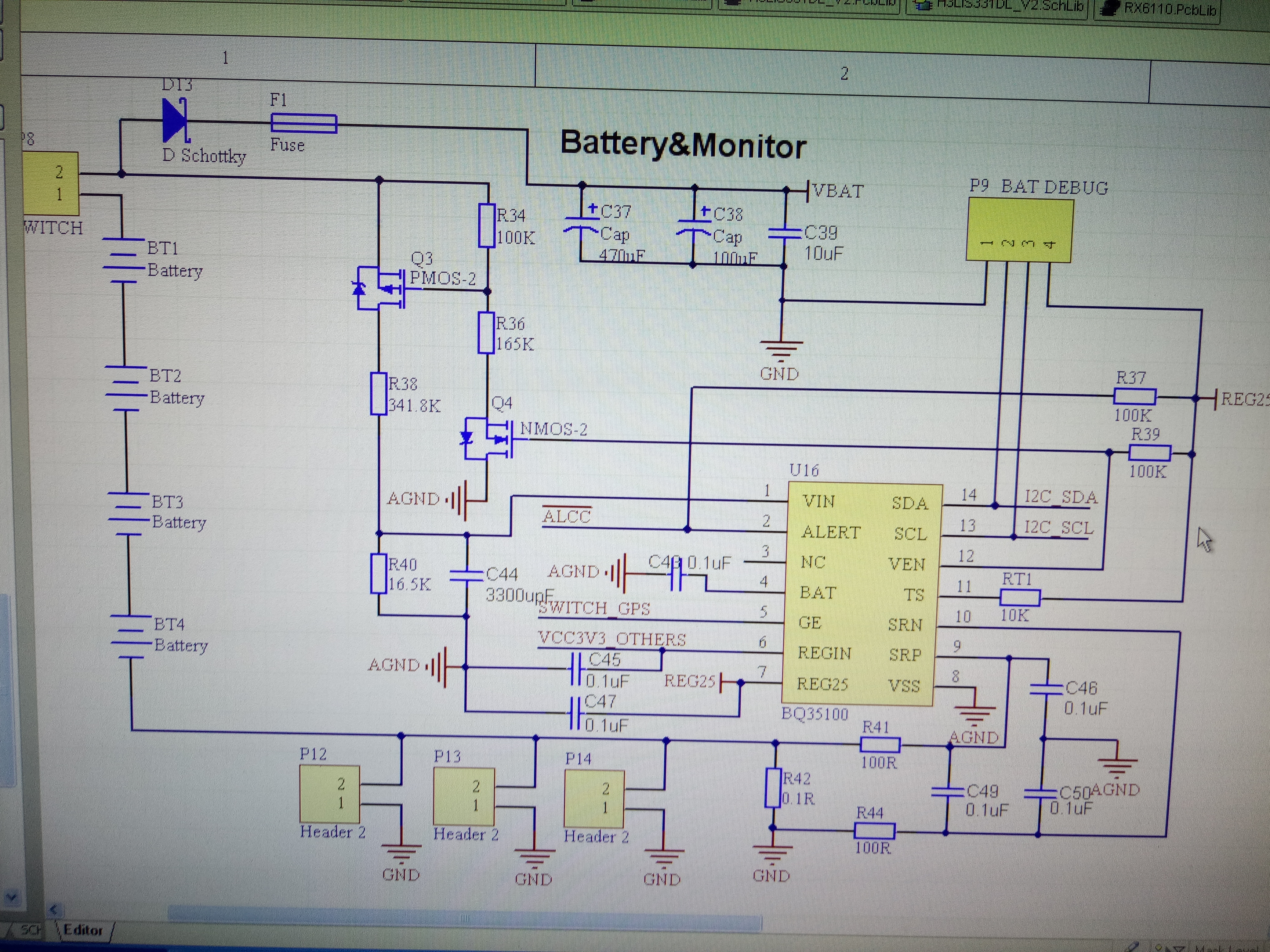 使用EV2300与自己设计的BQ35100连接,BQ35100芯片REG25电压输出正常,用Battery Management Studio ( bqStudio ) Version : 1.3.54软件打开后总显示附图中的提示(第一张图),点击OK后进入软件无法显示BQ35100图标(第二张图)。求指点。附图是我设计的BQ35100原理图,GE与REGIN管教均为高电平3.3V,I2C总线通过3.3V电上拉