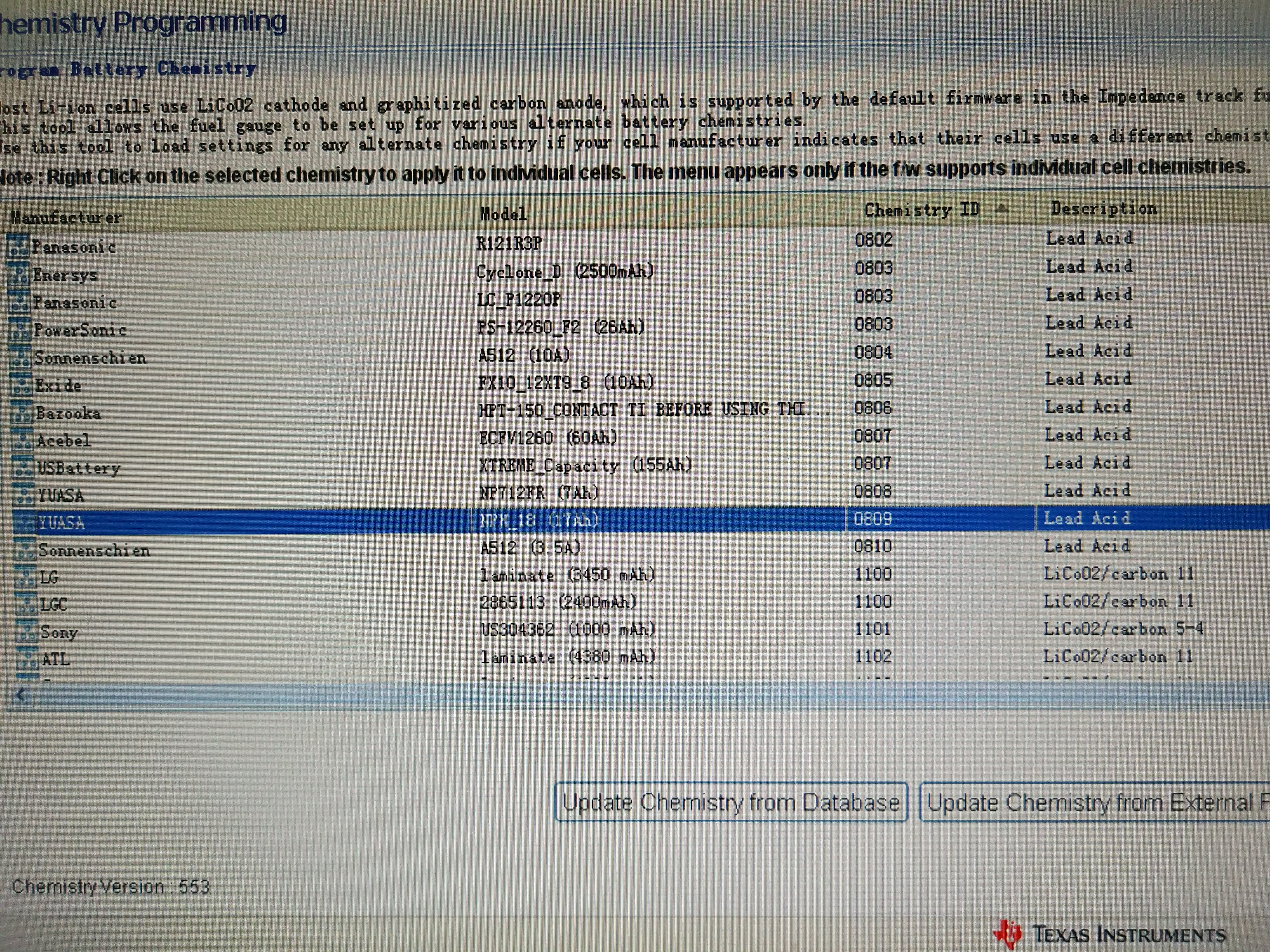 bq34z100g1支持PbA(铅酸电池),见器件文档,充放电循环后上传gpc得到ID为809,bqstudio中也有啊