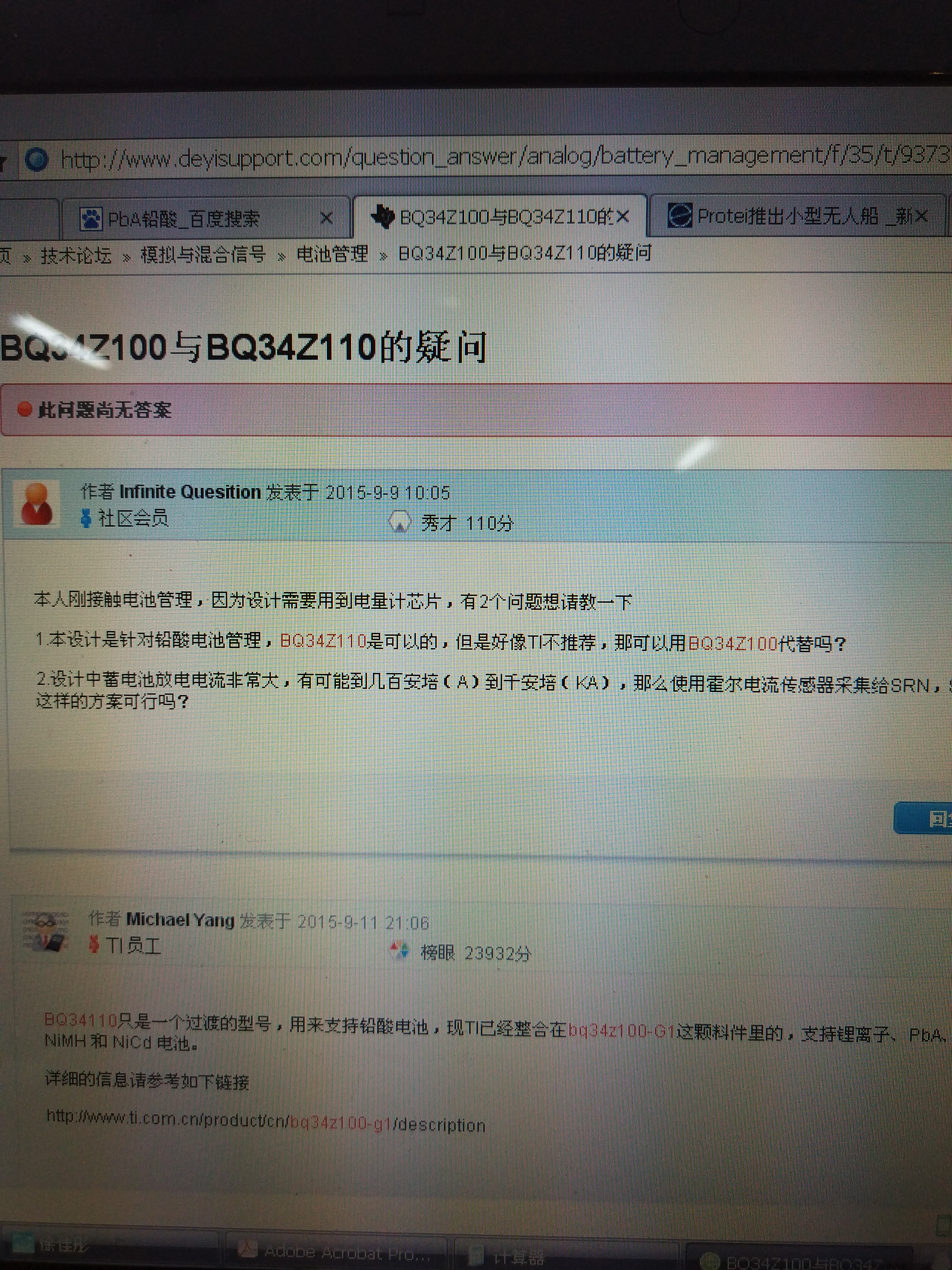 铅酸电池的特性和锂电池的相差很大,包括放电曲线,温度对阻抗的影响等都是不一样的,套用同样的算法本来就是不怎么合适。最新的BQ34110的算法对于这些的支持会更好些。