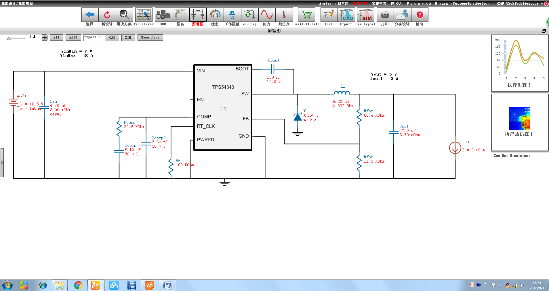 不带载输出正常5V,使用滑动变阻器增加负载,测到的输出电流只要超过700mA,电压马上降到1.8V左右,并且电流越大,输出电压的波纹幅值也越大。去掉负载又恢复5V。电路完全按照TI给定的设计工具来做的,为什么输出电流远远达不到3A,麻烦帮忙看下问题出在哪里了?