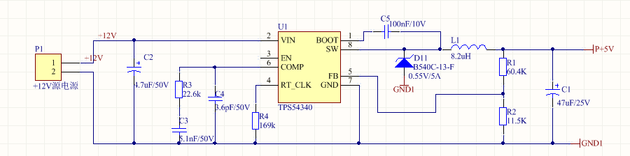 求助!TPS54340做的一个10--30V输入,5V输出的电源,为何负载电流总是上不去