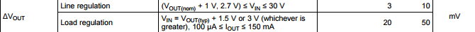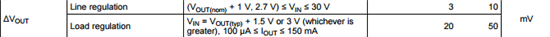 线性调整率是指LDO的输入电压变化对输出电压的影响,在上述芯片的例子中输入电压从Vout+1V 增加到5.5V,输出电压的变化是0.02%/V (每一V输入电压的变化带来0.02%的输出电压变化)