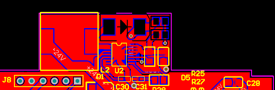 使用和TPS55340一样的原理图,PCB见附件。用3.7V升压为24V后,带8W负载,温度太高,达到80多度,以至于TPS55340自我保护,电压忽高忽低变动,输入电容大小进行了更改,电感也由10uh改为15uh了,还是使用七八分钟左右后又发热,引起自我保护,哪些方面需要注意?