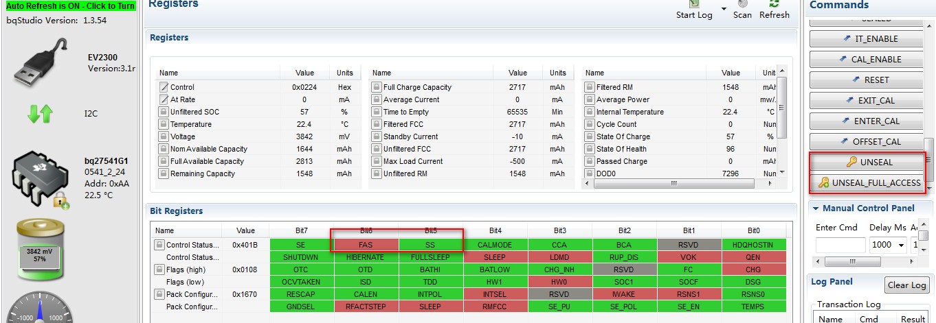 1,请问下bq27541G1解密后如何进入Full Acess模式,目前Seal to Unsealed和Unseal to Full的密码都一样,可以用命令解密但就是进解不了FAS,另外在界面上点击UNSEAL和UNSEAL_FULL_ACESS效果也是一样,只能进入Unseal?